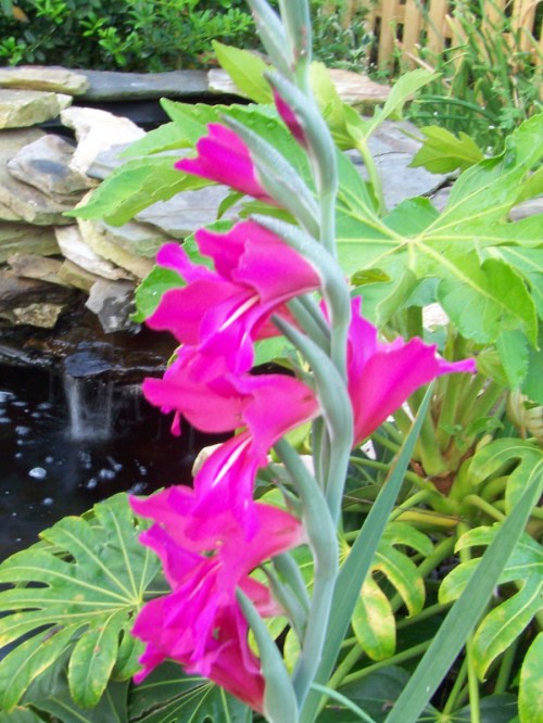 Oh, you lucky girl! That second photo is wild gladiolas! To be precise, they are Byzantine gladiolus. They are one of those old, old flowers that bloom all over the south; you often see them in the country where houses used to be! I love them because of their bright color and low maintenance. Make that NO maintenance, you really don’t have to do anything and they will multiply and return yearly. They are heirlooms, hang onto them!