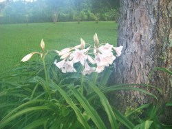 Now, speaking of some cold tea on a hot day, that is just what is needed around here these days. Summer has arrived! When I awoke just at sunrise, the outside of every single window was sweat-lined from the humidity. Here is a photo of crinum lilies beneath the pecan tree. They are foggy, because the camera lens fogged in the humidity. Peaceful in the early sultry morning. I hold the feeling in my heart as I walk barefoot in the wet grass.