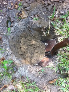 I learned that the way anything is done– an house cleaned, a Bible passage understood, a book written– is the same way one digs a hole, a little bit at a time, and gently is best. Also using a sharp shovel.