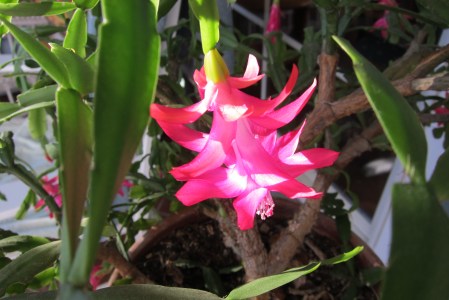 The glory of the heirloom Christmas Cacti continue. This is the 34 year old plant, kept on the screen porch, but compulsively brought inside when temps dip toward freezing.