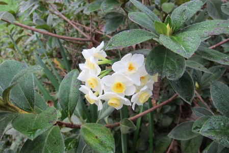 Yes, a few lingering paperwhites in the middle of an azalea.