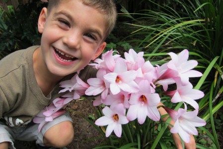 The rain lilies are stunning–but that little guy’s smile steals the spotlight! 😉 I definitely think I need to add rain lilies to my garden. Happy Bloom Day!
