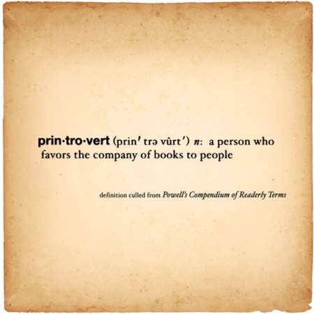 Prin-tro-vert: n. a person who favors the company of books to people.