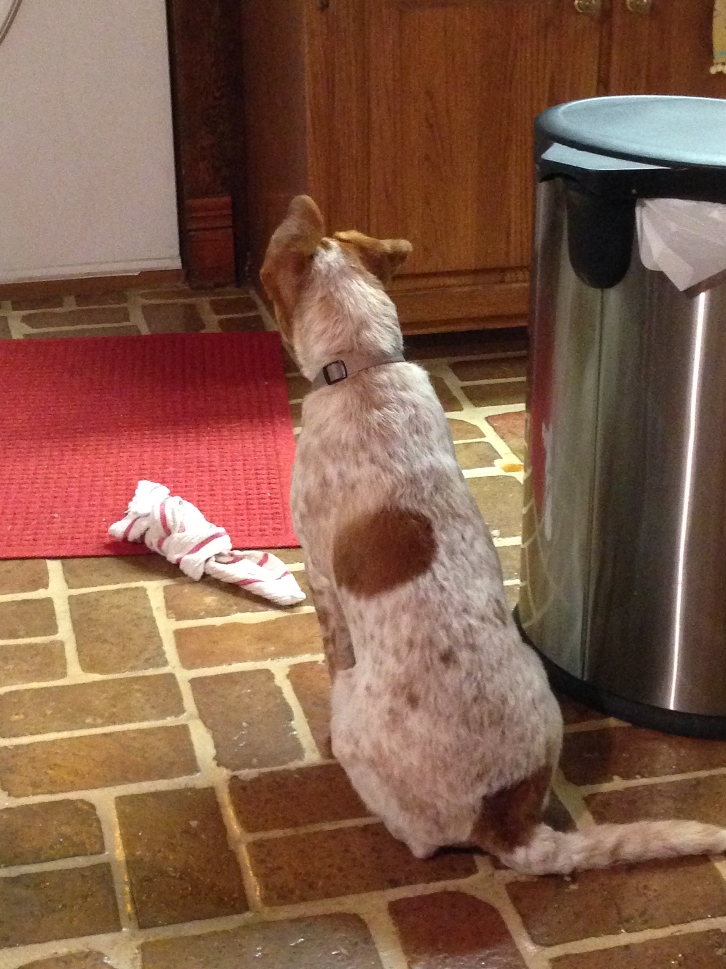 My Girl grew fast. She quickly outgrew her first crate, and I decided she took up too much room in the bed with me. I got her an enormous crate that I put beside my bed. This worked, as long as I didn’t attempt to shut her into it. Twice I tried, and my girl dealt with the situation by taking the metal wires of the crate in her strong jaws and shaking it until the whole thing fell apart.
