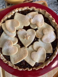 Thanksgiving has rolled around again. Let my holiday baking begin. My baking is a tradition for me and my family. Raisin pie is a favorite. Never heard of raisin pie? I hadn’t either until my husband begged me to learn to make it back in the ’70s. I don’t recall where I found the recipe I use, but there is an elaborate recipe in an old cookbook inherited from my grandmother. This cookbook says that raisin pie is a Pennsylvania Dutch dish and known as ‘funeral pie’. The name came from raisin pie being served often in the olden days at the meal after a funeral; raisins were readily available and kept well.