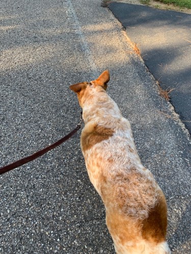 I think the turn for fall was in the air this morning, because Faith stepped out lively, mostly walking briskly out in front of me in a pleasant manner and for some time without a leash.
