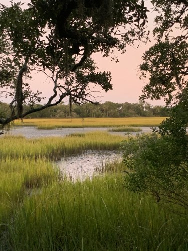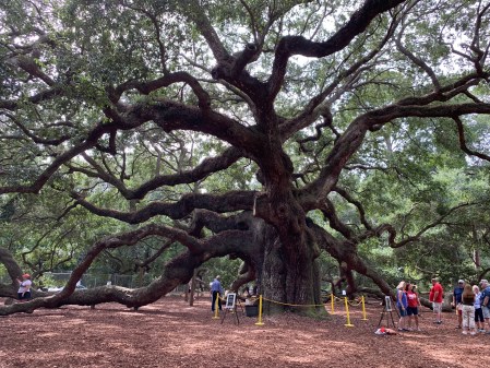 In south Georgia I enjoyed a good visit with a cousin and her husband, reminiscing over old times and family long gone. They sent me on my way with prayer, and I headed to Edisto Beach, South Carolina, where my sister-in-law joined me. I indulged my fascination and enjoyment of old churches and graveyards, got to see the Atlantic Ocean for the first time in many a year, the Charleston Tea Plantation–the only place in the U.S. where tea is grown–and the Angel Tree–a 300-400-year-old live oak.