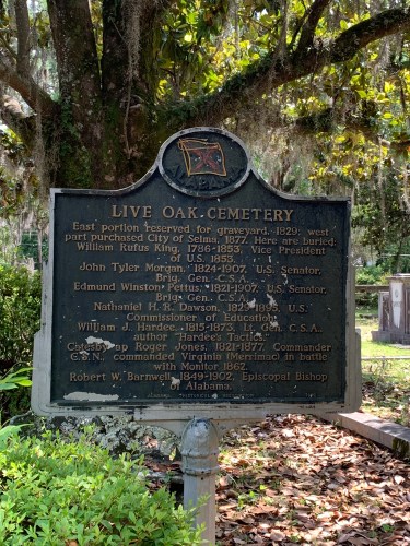 I camped at a wonderful Corps of Engineer park, Prairie Creek Campground. Delightfully peaceful, spacious, and very easy to back into. This park is south east of Selma, Alabama, so while there Faith and I went into Selma to visit the historic Live Oak Cemetery and pay our respects (yes, I take Faith with me everywhere). Since internet service was poor at the campground, I took my computer, and right there in the cemetery from the 1800s, in the generous shade of an old live oak dripping with moss, I was able to upload files to the Cloud, via my phone hotspot. It felt eerie, like being inside a Ray Bradbury novel.