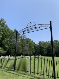 The church building was actually erected up near Greensboro, Alabama, and ten years later, at a time the South struggled to survive, it was moved to Forkland. I have not read why. There is a historical black and white photo here, which shows there were no woods around it in 1935. The small graveyard behind the church now stretches into the trees, surely long lost graves swallowed up by the tree roots and brambles.